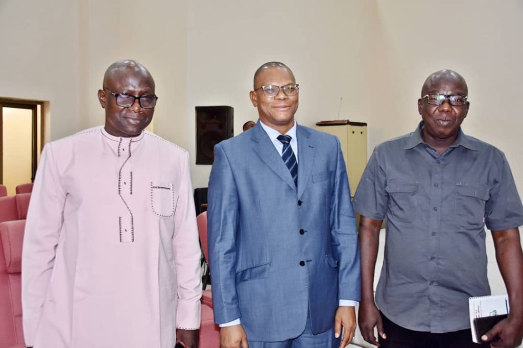 Photos de famille à l’occasion de la visite d’échange entre le Ministre de l’Economie et des Finances, le Président de la Section des Comptes et la délégation de la Cour des comptes de l’UEMOA.